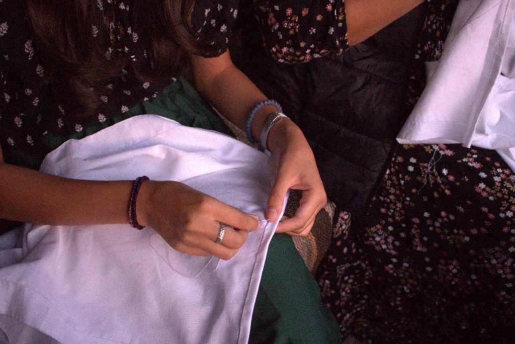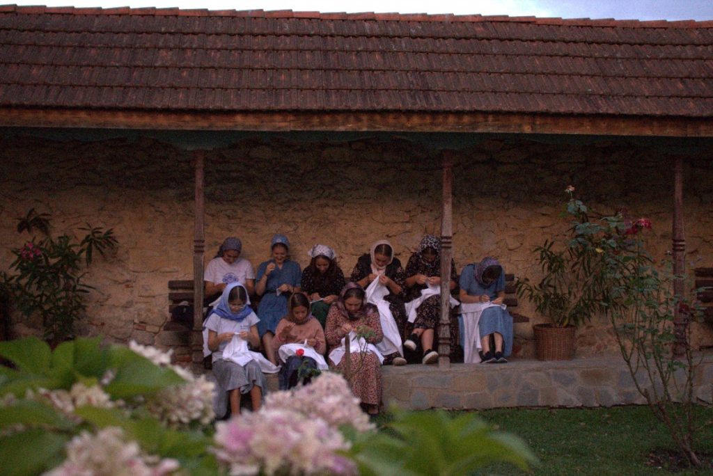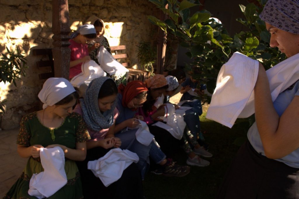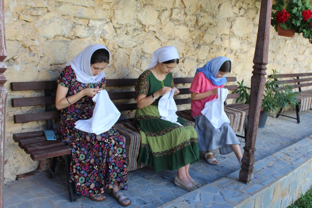 Mănăstirea oferă cadrul perfect pentru un astfel de scop, așa că tinerele s-au rupt pentru o săptămână de rutina zilnică, de zgomot și agitație, și au experimentat… măcar puțin din viața femeilor de demult. Meșter popular Simona Bunică le-a introdus în atmosfera traiului strămoșilor noștri, povestindu-le din naturalețea vieții lor și învățându-le pe fete, pas cu pas, tainele cusăturilor tradiționale și felul cum acest meșteșug face parte din firescul femeii.